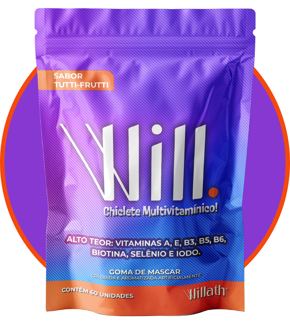 O Will é um chiclete funcional formulado com vitaminas e minerais para nutrir cabelo, pele e unhas. Ele funciona por absorção pela mucosa bucal e oferece praticidade e eficácia sem o uso de cápsulas.